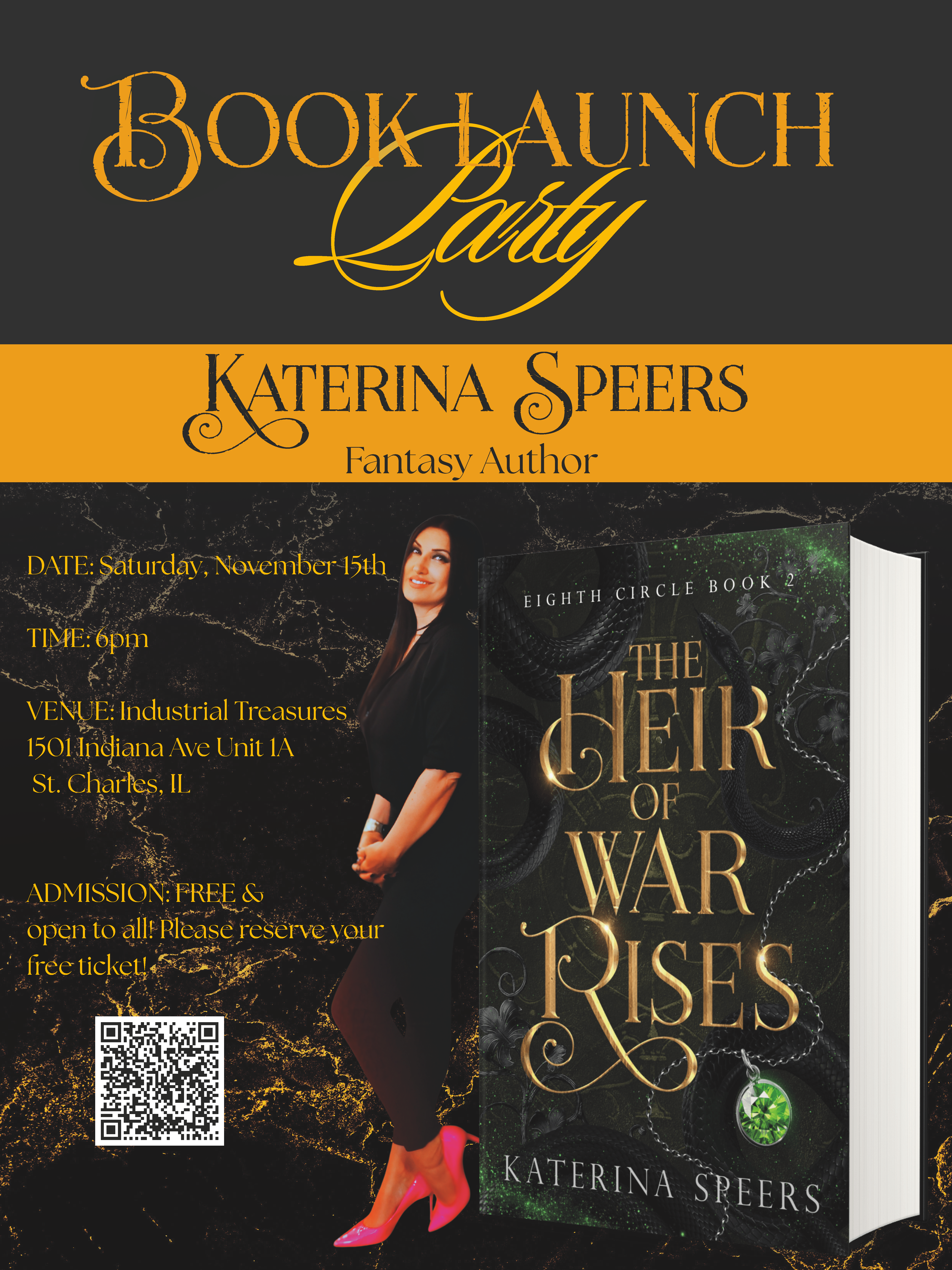 Join us Saturday, November 15 for a special evening as we host the official book launch for local author Katerina Speers and her brand-new fantasy novel, The Heir of War Rises!